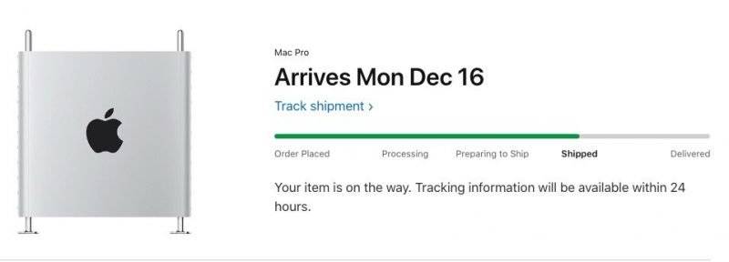 MacStadium’s Brian Stucki ordered a couple of new Mac Pros right when Apple began accepting purchases, and his first Mac Pro is coming in just a few days on December 16, which is earlier than the delivery dates that Apple had listed.